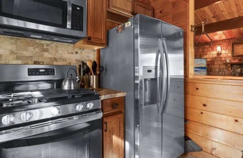 As you walk through the front door, you will be welcomed by a cozy living room where you can relax by the wood- burning fireplace. Here you can enjoy a movie or play some games with family and friends, The inviting living room flows right into your fully stocked kitchen equipped with an air fryer, waffle maker, basic cooking seasonings, as well as a coffee bar to kickstart your mountain mornings. The sliding door by the living room opens up to your intimate back deck where you can enjoy a drink while grilling a feast for family and friends. At sunset, unwind in your private hot tub on the front deck after a long day of snowboarding, mountain biking, or hiking.