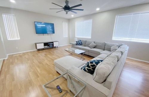This home has everything you will need for a comfortable and relaxing stay. Equipped with fast Internet with speeds up to 200 MBPS, you can work from home or relax on the couch and stream your favorite TV shows on the 65" Smart TVs. Kitchen is fully stocked with cookware, silverware, and more for you to make a delicious home cooked meal. Stay with us with peace of mind as we have taken extra precautions and adopted enhanced cleaning procedures in our fight against COVID-19