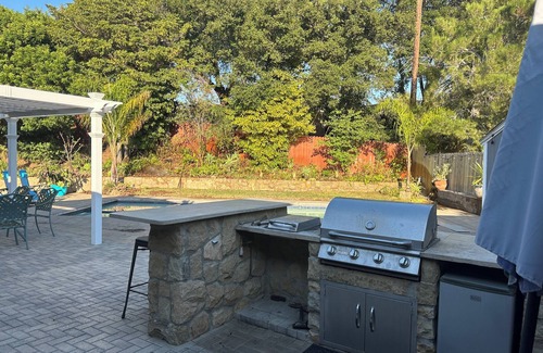Welcome to this charming house in Santa Barbara. Bask in the Santa Barbara lifestyle in this lush, oversized dream backyard, with a pool, jacuzzi, custom BBQ/bar, fire pit, fruit trees and plenty of seating and space to explore. This marvelous property boasts 4 airy bedrooms, including 1 king bed, 2 queen beds, and 2 twin beds. Located on the base of the foothills, enjoy mountain views- and on a clear day, ocean views as well- just a 10-minute drive from downtown, beaches and the Mission. Premiere shops and restaurants of Upper State Street are a 5-minute drive. Fall in love with Santa Barbara and enjoy the magic it has to offer!