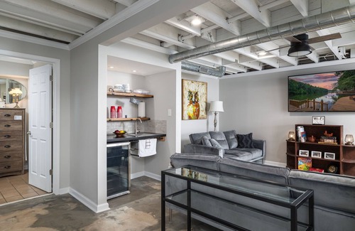 NOTE: Security cameras located on premises: one facing drive, one facing dock. No hot tub on premises. Boat launch 3 minutes away by water. Bring your boat & use mooring whips to secure/tie-up. Lift unavailable. Home is divided into a main level with a full kitchen , 2 bedrooms each with a queen bed—all linens supplied—and a full bathroom with stand-up shower. Linens, toiletries and paper products provided. Outside main level is screen porch, deck with gas grill (gas provided), and stairway from deck to lawn. Below and separate from the main level is the basement suite with a queen bed, full bathroom with stand-up shower, washer & dryer, kitchenette with bar sink, small fridge, coffee maker & toaster, and lounge area with fold down, futon-style couch. Outside basement level has a patio with ample seating, 4 kayaks for guest use and a bin of noodles and life jackets. Beach towels in laundry area. Both main & basement levels have large SmartTVs & 5G WiFi so you can access your own programs via Netflix, Hulu, etc.