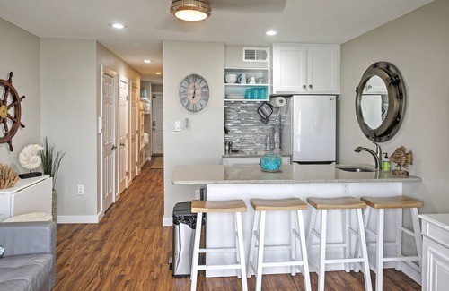 Welcome to your coastal sanctuary in Corpus Christi! This 1-bedroom, 1-bath vacation rental on North Beach offers the perfect place for relaxation and seaside fun. Stroll over to the sandy shore, delve into history at the USS Lexington Museum, or visit the Texas State Aquarium. Looking to unwind? Kick back on the deck and soak in shimmering views of the Gulf. Book this oceanfront condo today!