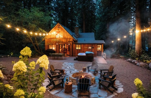 Welcome to Barlow Haus, a secluded cabin nestled on 2 acres of forest in Brightwood, OR, at the base of Mt. Hood. Immerse yourself in the beauty of this private woodland retreat, where nature meets thoughtful design. The property boasts an inviting backyard complete with a hot tub, sauna, fire pit, BBQ, and ample seating for gatherings. The cabin has been meticulously restored and enhanced with new finishes and modern amenities, offering a seamless blend of cottage charm & contemporary comfort.