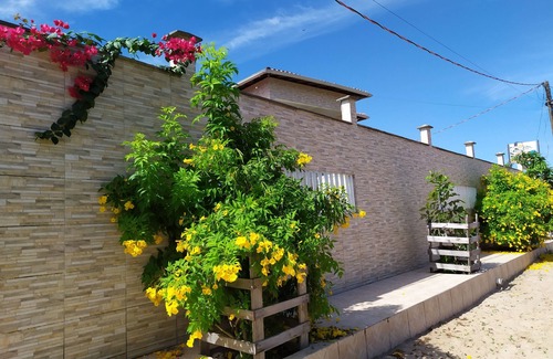 House with everything inside (furniture, appliances and kitchen utensils) ready for lodging. There are 3 bedrooms all with air and mounted (double bed, single and nets) including 1 suite, 4 bathrooms, bed linen and bath in all accommodation, Wifi, TV, air conditioning, internal garage for 9 vehicles, 4 balconies with shipowners for more than 20 nets, and there is external parking for 20 vehicles.