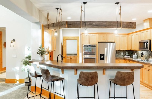 The home was recently remodeled with all new kitchen appliances including double ovens and a wine fridge, new washer and dryer, new living room and bedroom furniture, new carpet and completely restored natural hardwood floors and trim throughout the entire home. Equipped with smart home technology including Google WiFi for indoor and outdoor coverage, Googl wireless cameras (outdoors only), Nest Doorbell and Nest Front Door entry lock for easy access to the main entrance. Vaulted ceilings in the living room with a 70 " Vizio TV w/ YouTube TV and large stone fireplace. Master bedroom suite includes a king size bed and 65” Vizo TV and private bathroom with large tub, separate shower and bathroom with a large walk-in closet. Main guest room off the hallway includes a queen bed and spacious closet. Private wing includes a 2nd guest room with a twin over full bunk bed with a desk and working space. Outside you will find a beautiful backyard with a spacious covered patio with a new propane BBQ, automated landscape lighting and a hot tub. Attached 2 car garage with snowboard/ski storage with built-in racks and benches to unload your winter gear & equipment.
