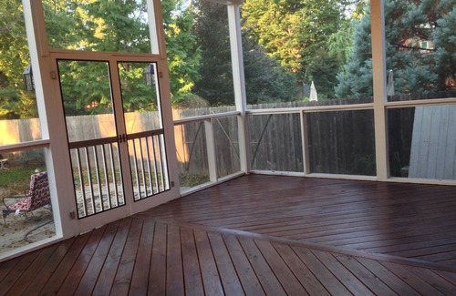 Our home has been completely restored and boasts an impressive 2400 sq. ft. of living space with 2.5 baths, 4 bedrooms, large kitchen with island, internet, master suite with jacuzzi tub, wood burning stove, 2 level deck with screened in porch, grill, large fenced in back yard that is secluded.