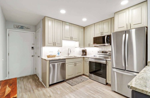 Newly Renovated Kitchen: A modern, fully equipped kitchen with island seating is perfect for cooking and socializing. Stainless steel appliances, granite countertops, and all the cookware you need make meal prep a breeze. Grab a barstool and chat with the chef as you plan your vacation feasts!