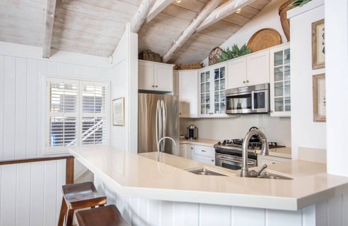 This completely updated cottage has a cloudlike king bed in the primary bedroom and comfy queen plus large twin loft in the second bedroom, making it ideal for families. The home features an open well-equipped kitchen with everything you need to prepare delicious meals looking into an inviting living and dining area, all with sweeping ocean and island vistas. Calling all entertainers: Indoor bar, perfect for pouring wine, mixing up cocktails and chatting with guests while finishing the evening`s meal and enjoying the view.