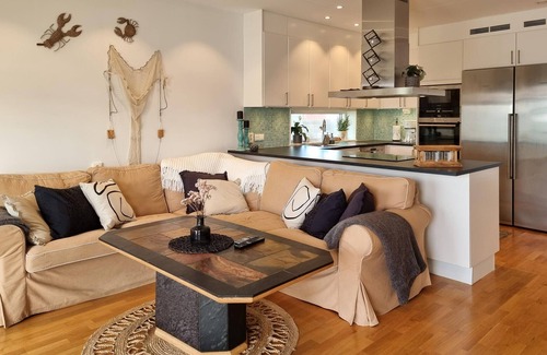 This stylish and high-quality furnished holiday home right by the harbour in Rönnäng offers you a unique holiday experience. Light-flooded rooms and a modern design create an inviting atmosphere for you. Start your day on the balcony or terrace, where you can enjoy the view of the sea. The two floors of the house offer plenty of space and comfort, while the nearby communal barrel sauna on the jetty invites you to spend relaxing hours.
