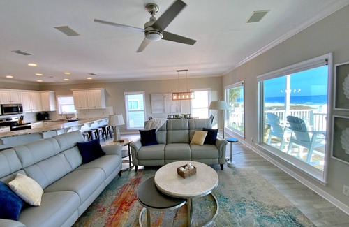Looking for stunning beachfront scenery? Look no further! This delightful, oceanfront duplex offers expansive views of the surf and sand from nearly every room. Relax and unwind as you take in the sights and sounds of the Gulf, creating unforgettable memories with family and friends.