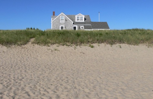 Lockup is a classic beach house, very charming, but not fancy, located on the beach in Wauwinet. Its location and views are spectacular! For that reason, Lockup has been featured in "Yankee" (May/June 2023), the 2003 Nantucket Calendar (March), in Robert Gambee's 'Nantucket Island' (1986) and in 'My Nantucket ABC Book' for children. Lockup sits atop the sand dune next to the ocean beach, and you literally walk off the back deck onto the enormous beach. You see water out of every window, and the house is surrounded by decks on 3 sides allowing you to choose sun or shade, breeze or no breeze.