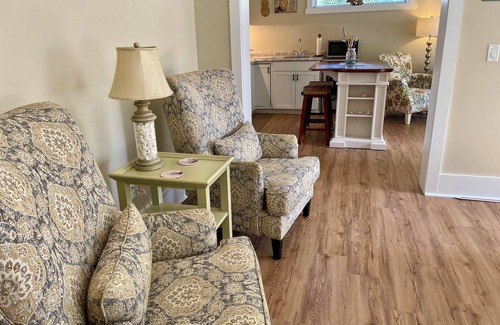 Private, near the beach, couples getaway (600 SQR') with two sitting areas, kitchen efficiency and outside private garden room. Secluded and nestled in a private setting, but only a 7 minute walk to the beach/boardwalk.