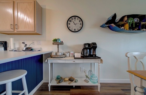Beach Please is a comfortable and convenient unit ready for a relaxing getaway. This great unit features a full kitchen with fridge, stove, microwave and dishwasher. It’s fully equipped with pots, pans, dishes, glasses and silverware. There are baking dishes and a blender, as well as Tupperware to store all your leftovers. There’s a breakfast bar and a separate dining area. Also, for those early mornings you can make yourself a cup of coffee from our fully stocked coffee bar. For evenings or rainy days each room has a TV with cable and Roku. The living room has a gas fireplace to keep you cozy and warm.