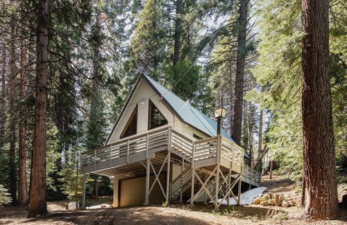 JUST RENOVATED! and perfectly situated less than 2 miles from the Southgates of Yosemite National Park, Beachcomber Cabin is an A-frame cabin perched high in the pines of Fish Camp. Fully equipped with a king bed, queen bed and a bunk bed + pull out trundle (baby gear on request), our cabin is great for families, small groups or couples wanting a peaceful getaway. With all new interiors, luxurious linens, a family friendly game area in the loft with an arcade machine and foosball, and a well stocked kitchen, Beachcomber Cabin is the ideal basecamp for all your outdoor adventures.