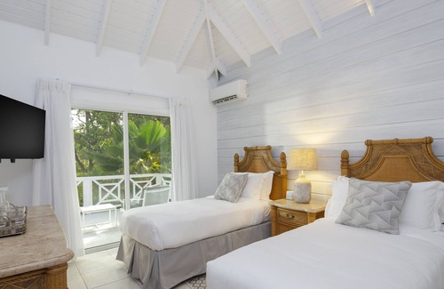 Just steps away from the soft sand beach, the Seafeathers Villa is ideally placed for enjoying beachfront living with full privacy. Contemporary interiors with 3 separate bedrooms (king, queen and two twin beds) and shady external areas compliment the beautiful Caribbean beachside setting. Beautifully appointed bedrooms with in-suite bathrooms, a full kitchen, lightly stocked upon arrival and living spaces ensure a supremely comfortable and relaxed stay. The villa includes Wi-Fi, satellite TV's, land line telephone and outdoor Jacuzzi.