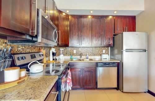 Enjoy the amazing views from this condo. Located on the ground floor, relax inside the air-conditioned living room and enjoy the pool, beach, and ocean views. Walk along the beach and enjoy the nice ocean breeze, or sunbathe by the shared pool. Prepare breakfast in the well-equipped kitchen and enjoy the sunrise from your patio.