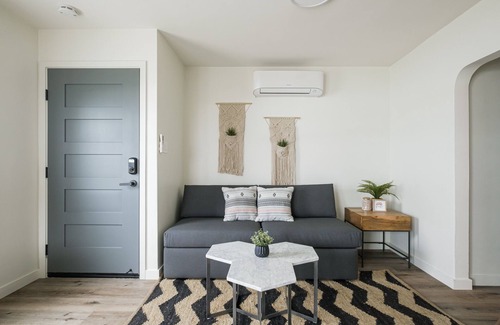 Our marquee beach front cottage offers front row seats to life on The Strand, steps from the water, with an unobstructed ground floor view of the sand, surf and sea. This beautiful, completely renovated one-bedroom apartment offers a delightful bedroom with a California king, a full bathroom, a living room with a pull-out queen sofa bed and a kitchen. With views from one end of the apartment to the other being inside is almost as good as being outside.
