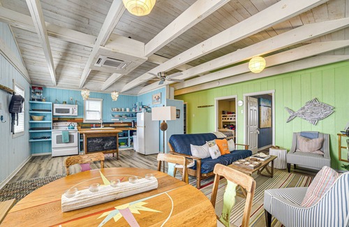 Experience seaside serenity at this 2-bedroom, 1-bath vacation rental on the Texas coast! This Freeport cottage promises carefree coastal living, complete with a sunny living and dining space, a charcoal grill for cookouts, and a private boardwalk right to the sand. If you want more to explore, take a day trip to Galveston's family-friendly attractions. Your dream beach getaway starts here!