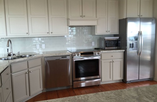 Beautiful, well-equipped chef's kitchen is perfect for preparing family meals. Large, open living area allows everyone to be together.