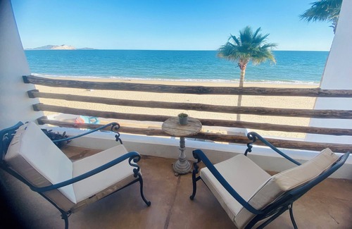 Relaxing beachfront getaway for a couple or small family. This relaxing and spacious apartment is right on the beach with a private balcony with ocean view. It has one bedroom with a Queen bed, a relaxing living area and a fridge and coffee maker. Please note: it does NOT have a full kitchen. This is a great space for a couple or a small family. There are 2 individual sofabeds in the living room.