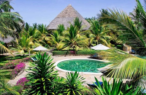 Experience a tropical paradise at this home away from home 2-bedroom cottage that sits right inside a 5-star beach resort. This cool cottage is the perfect getaway for guests seeking a peaceful and gorgeous retreat. With its cozy ambience featuring Swahili style decor, furnishings, and a large swimming pool featuring a calming water fountain surrounded by a lush green lawn, garden and whispering tall tropical palm trees, guests have plenty of space to relax and unwind giving guests a 5-star luxury experience for a small price. The property also offers convenient amenities like a Gym and Spa (charges apply) bar, restaurant, Internet TV, AC, and Wi-Fi to ensure a comfortable stay. Immerse yourself in the tranquility of Malindi and enjoy the beauty of this stunning destination. The beach is a two minutes' walk through the resort. Malindi Airport, the shopping center, restaurant, bars and popular hubs are all ten minutes away. Getting around...there are plenty of taxis & tuktuks for cheap.
