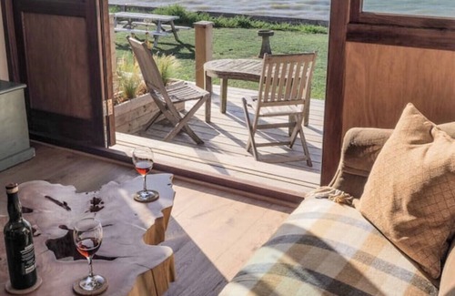 Delightfully charming newly built detached chalet on the seafront, in one of the most characterful corners of the Island. Well appointed to a high spec. Eclectic mix of vintage, rustic and up-cycled furnishings. Heated oak floor. Fully fitted modern kitchen. Bedroom can be king double, or 2'6" twins. Only children over 12. No pets. Perfect getaway any time of year. Ferry discounts. 7 nights min; contact landlord for fewer nights.