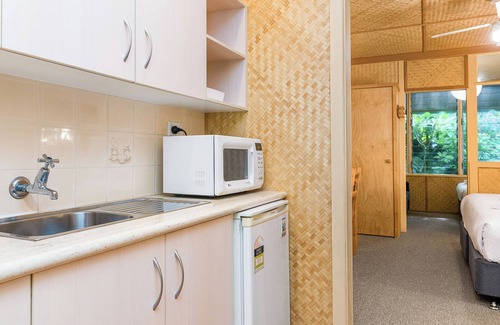 Perfect for longer stays with a small kitchen including induction stove, microwave, kettle, toaster, bar fridge and sink as well as cutlery/ crockery etc.