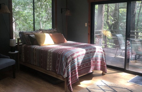 The cabin is a one-bedroom studio, with a full kitchen, full bath, and a comfy double bed that overlooks Bear Creek. You will be tucked in a mature forest in a very remote area of the Santa Cruz Mountains, so be ready to unplug for some serenity and forest magic.