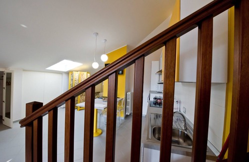 Third loft apartment: living room with equipped kitchen, first bedroom 1 double, second bedroom 2 single beds, bathroom with motorized velux; 2 motorized velux; walk-in closets; appliances: microwave, dishwasher, washing machine; air conditioning, WIFI internet; 4 beds 80 square meters