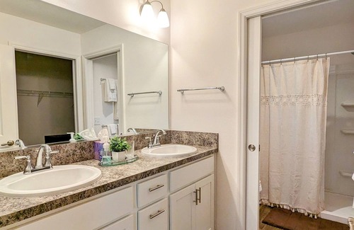 The master bedroom has a king size Sleep Number Bed ready to adapt to whatever individual firmness you and your partner find most comfortable. There is a large 55” Smart HDTV wall mounted for your viewing pleasure and an ensuite master bath with a walk-in shower and large walk-in closet. There is also a small writing desk and chair. The second bedroom has a queen size bed and a wall mounted 55” Smart HDTV. The third bedroom sports a trundle daybed that holds 2 twin beds. It is also set up as an office space with a large desk and office chair.