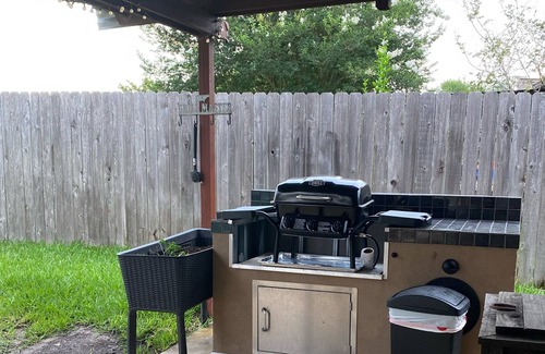 In a quiet neighborhood close to The Woodlands shopping mall, market square, movie theaters and Cynthia Pavilion. Main bedroom with King size bed, 2 other queen size beds, office could hold a blow up mattress if needed. Washer/Dryer, Diswasher, Pool, outdoor table, Jacuzzi. Well maintained.