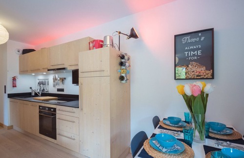 Very nice 58sqm apartment for 4 people, 3 star, on the ground floor of the new residence with lift "Le Green", located in Les Praz de Chamonix, 350 metres from the cable car of La Flégère.