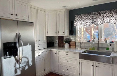 The beautifully renovated Farmhouse, situated on 2 acres, maintains its original charm, while featuring modern updates. At a spacious 2500 sq ft, with 4 bedrooms, including 2 master suites, and 3.5 bathrooms, it comfortably sleeps 10. The generous, well-equipped kitchen is a chefs delight, and opens to an airy dining room, perfect for gathering. There is plenty of space to relax, with 2 sizable living rooms, each with its own flat screen TV.