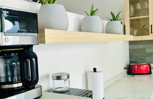 KITCHEN: Fully stocked with pots, pans, and everything else you need to cook and serve a meal. Basic spices, salt, sugar, oil, and (of course) hot sauce. Both caffeinated and decaffeinated coffee, as well as an assortment of teas. Eating out in Mazatlán is a favored pastime, but this kitchen makes eating in equally pleasurable—especially when you serve the meal on the back patio or the rooftop. Don’t forget to grab fruits and veggies—so fresh—from any of the nearby markets!