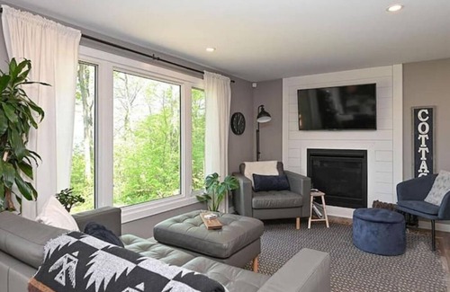 Enjoy peaceful views of the lake, or cozy up by the fireplace inside with your favourite board game and hot cocoa.