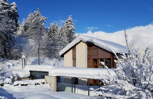 120 m2. More information by the provider: Schlafzimmer: 1 geräumiges Schlafzimmer mit grossem Doppelbett. Bettwäsche vorhanden und im Preis inbegriffen. Badezimmer: Das Badezimmer im oberen Stock verfügt über Dusche/WC/Lavabo. Frottewäsche und Haarföhn ist im Mietpreis inbegriffen. Im unteren Stock befindet sich ebenfalls ein seperates, kleines WC mit Lavabo. Wohnzimmer: Offener Wohnraum mit Küche und Essbereich. Im Wohnzimmer befinden sich verschiedene Regale, sowie ein Sofa. Die grossen Fensterfronten sorgen für viel Licht und eine angenehme Atmosphäre. Der offene Essbereich mit einem Nussbaumtisch bietet Platz für 4 Personen. Küche: Die Küche ist komplett ausgestattet mit Kochherd/Backofen, Geschirr, Geschirrtüchern, Wasserkocher, Kühlschrank mit Gefrierfach und Nespresso-Kaffemaschine. Inneneinrichtung: Die Räume sind zeitgemäss und wohnlich eingerichtet. Das Mobiliar ist neuwertig und wird vom Vermieter laufend kontrolliert. Die Mieter werden gebeten das Mobiliar mit Sorgfalt zu behandeln. Unterhaltung: WLAN ist im ganzen Haus verfügbar und kostenlos. Kein TV-Gerät vorhanden, Sendungen können aber via Laptop empfangen werden. Diverse Wanderkarten und Informationsbroschüren der Region stehen kostenlos zur Verfügung. Extras: Das Ferienhaus bietet einen wunderschönen, gepflegten Garten. Im Zentrum steht ein moderner Glaspavillon mit Cheminee und gemütlichen Loungemöbeln, die zum Verweilen einladen. Die gesamte Gartenanlage samt Pavillon und Wasserbecken erstrahlen Nachts im schönsten Licht. Bei gutem Wetter lädt der Gartentisch zum gemütlichen Beisammensein ein. Ein Carport und eine Waschmaschine, ein Bügeleisen und ein Bügelbrett stehen ebenfalls zur Verfügung. .
