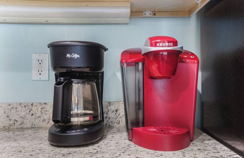 Our kitchen has also been remodeled, showcasing white shaker-style custom cabinetry accented with fine granite countertops. It includes a new under-counter sink with a modern single faucet. The kitchen is fully stocked with pots, pans, dishes, cups, glasses, and an array of cooking and eating utensils. Additionally, a brand new Keurig K-Cup pod coffee maker, a 12-cup coffee maker, toaster oven, blender, and microwave are all available for your use. From the kitchen, you can enjoy unobstructed beach and water views.