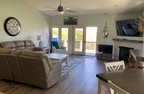 Spacious condo on Jimmerson Lake. Wonderful view from deck with seating and grill. Front and back garage included. Includes all amenities including community pool, playground, and use of golf cart. Also has boat lift available.