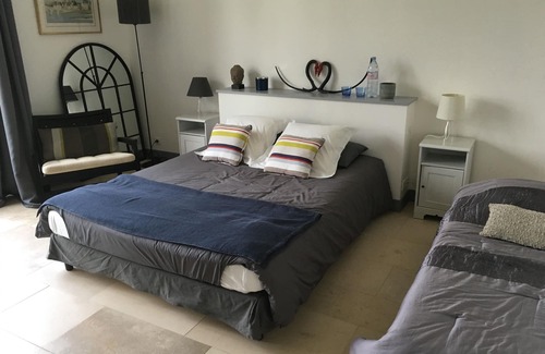 It is composed of 4 large bedrooms and 1 very large room; each bedroom has its own bathroom and toilet. The living area is very large. A large awning allows you to enjoy your meals otside. The kitchen is fully equipped with 2 refrigerators, induction hob, electric oven, microwave). There are 2 TVs, BBQ and sun loungers, garden table and chairs. There is broadband wi-fi access throughout the property.