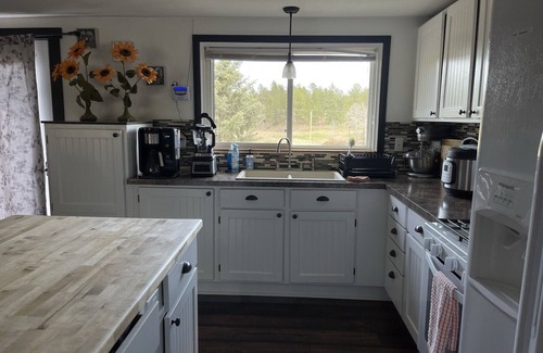 Fully renovated in 2025! The backyard is enclosed so young children can run. The front looks onto a pond that can be accessed for pole fishing by standing along the county road. There is an upstairs sitting area with a large tv and a downstairs area as well so the kids can have a space. Both spaces have 70 inch TVs. Upstairs there are 4 bedrooms and downstairs there are 2 more. Bathrooms are on each level. You are 1 mile from the back entrance to Custer State Park. This takes you to Needles Hwy ( about 4 miles away).