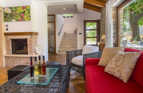 Vacation house Marina is located on the edge of a peaceful village called Vosteni, ideal for a quiet holiday with family or friends. This beautifully restored holiday home is located on a beautifully landscaped plot on the estate of the family Vošten, which deals with olive growing and olive oil production. On the ground floor there is a kitchen, a living room with direct access to the terrace and swimming pool, and one bathroom. On the first floor, accessible by the internal stairs, there are three bedrooms and two bathrooms. One of the bedrooms has its own bathroom. All rooms are air-conditioned and equipped with satellite TV. Come spend your vacation in Villa Marina to relax and enjoy the beautifully landscaped environment and refresh yourself in the crystal clear waters of the private pool.