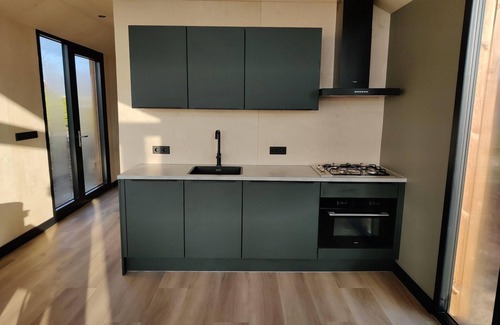 The trademark of this holiday park is that it is able to combine several, smaller accommodations with a cosy group space like no other. In this case, you book four chalets in combination with a communal area close to where the kitchen and the space for the whole group are set up. Perfect for spending time together, but also for enjoying the privacy of your own chalet. The description of the chalet (which can also be booked separately) is as follows: The design of this beautiful accommodation is based on the popular Tiny Houses, but it is slightly more spacious. This chalet offers you two full bedrooms, both with 2x a 1-pers. box spring bed, either in 1 or in 2-person set-up. The bathroom and open kitchen are modern and fully equipped. From the living room, you reach the small, covered terrace and the spacious garden with garden furniture through the patio doors. A great place to start and end your day in the versatile province of Flevoland.