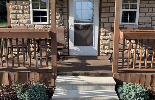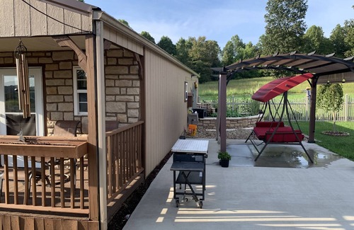 Single story carriage house with full kitchen, dining area, bathroom, bedroom and a large living room. A beautiful koi pond on the East with a nice deck with rocking chairs. This small home offers privacy from traffic as it sits 200’ off the end of a cul-de-sac in a small southern Ohio village. We cater to hunters, hikers or families who want to escape the city life and enjoy a nice country sitting. Plenty of wildlife off either side of the property for your viewing pleasure. Flat screen Tv with WIFI on-site as well.