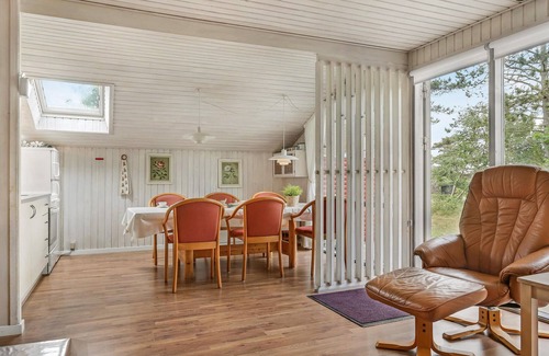 This attractive holiday home with sauna awaits you on a secluded natural plot south of Ålbæk. The house has a bright and friendly atmosphere and is just a short walk from the beautiful beach. There is plenty of space for socialising, playing quizzes, cooking together and much more. Use the open-plan living area as a central meeting point for the family.