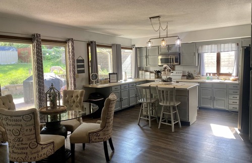 This beautiful, cozy home is located in a quiet neighborhood just minutes from downtown Viroqua where you can enjoy everything the heart of the Driftless area has to offer! With an open floor plan and 5 bedrooms this home provides plenty of space for you, your family, and friends to enjoy. You are a 3 minute drive to Viroqua's Main Street or a 10-15 minute walk. Located on a quiet street with kind neighbors you'll feel right at home! All are welcome! Please read below before messaging: parking, the layout, etc.