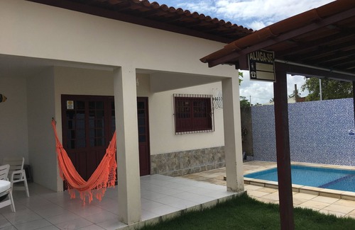 Spacious house with pool, 3 bedrooms all CLIMATE, with double bed and bunk beds, 3 bathrooms, one suite, kitchen with cabinets, stove, refrigerator, freezer, microwave and all household items. Large living room with sofa, table and TV. Shaded and ventilated terrace and large area for up to 3 cars.