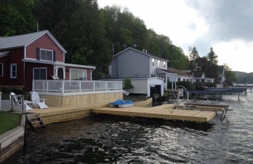 Pet free in 2026. Arrive and enjoy this lovely 3 bedroom cottage on the water's edge, main floor bedroom and 4 piece bath, huge dining room with harvest table for 10, cozy living room with flat screen, Netflix and internet, upstairs features 2 large bedrooms each with 2 double beds plus rollaway, each bdrm has its own vanity and there is a water closet as well. The deck overlooks lake and has BBQ, eating area and sitting area. the breakwall, deck and dock are brand new in 2015. Firepit outside, Great area for swimming with shallow entry, diving board off the dock, super fishing, water activities, paddle boat, paddle board, etc.
