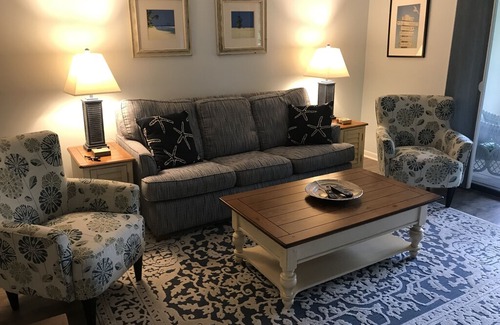 Great 2 bedroom villa in Fiddler’s Cove! This is one of the larger villas. This villa will be has been completely renovated. It is located in Fiddler’s Cove Beach and Racquet Club on the lovely island of Hilton Head. Fiddler’s Cove is a private gated 23-acre resort that has two swimming pools (one Olympic-size), Hot Tub, ten Clay Tennis Courts, Racquetball, Children's Play areas, barbecues, and much more. You will be just steps to the well-maintained pool and a short, 10 minute walk to the beach in Building 30. This beautiful coastal inspired villa sleeps six with 2 bedrooms and a queen sleep sofa. Very clean and fresh! Renovations include: • Solid wood kitchen cabinets with beautiful granite counter tops • Vinyl plank in the kitchen, living and dining rooms • Vanities with granite counter tops, tile floor, and new toilets in both bathrooms • New tile shower in master bathroom added in 2020 • Furniture, bedding, and towels • Appliances – refrigerator with ice maker, smooth top stove, quiet dishwasher with stainless interior, microwave • HE washer and dryer • Top quality cookware and kitchenware • Flat screen Smart (Roku) Televisions • The villa is decorated in pastel greens and blues. Tons of extras include: • Free secure wireless internet • Flat screen TVs in living room and both bedrooms with cable • Crock pot, coffee maker, blender, microwave, toaster oven • Extra linens and beach towels • Beach chairs, umbrella, beach wagon and beach cart provided • Owner lives locally to take care of any problems and also assist in directions, restaurant recommendations and general island information. • And more!! ...again top quality and extra amenities to save on packing! This 2 bedroom villa is located on the 3rd floor. It has a queen sized bed in the master bedroom with flat screen TV with built in Roku and adjoining bathroom. The master bathroom has a new tile shower replaced in 2020. The guest bedroom has two twin beds, with flat screen TV with adjacent bathroom. The living area has a new queen sleeper sofa and 2 chairs with a 50 inch flat screen TV with built in Roku. A private patio with table and 4 chairs and loveseat set off the living area and master bedroom provides a perfect setting for snacks or coffee. Fiddler's Cove Beach and Racquet Club is located mid-Island off Folly Field Road close to the beach in a 24 hour security maintained gated community. The architecture of the community is colorful low-country casual. Large oak trees trimmed with draping moss provide shaded areas throughout the resort. Parking is right outside the door to the villa. The grounds are well maintained with lots of seasonal flowers and foliage to enjoy. Our villa has everything you could possibly need for a relaxing fun-filled vacation.