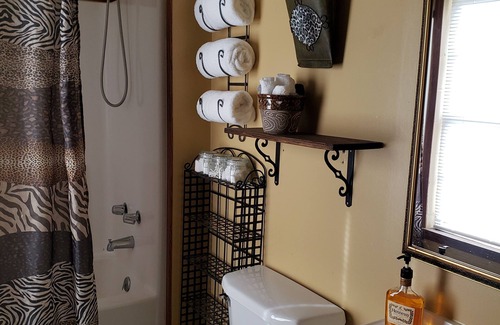 Beautiful, spacious studio apt with a huge gorgeous private patio, king size bed, large tv and full kitchenette. Lovely quiet country setting, free parking and full bath with shower/tub. Custom home decor with a vibe like home.