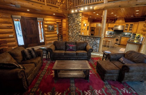This exquisite Greer log cabin perfect for group gatherings with an authentic mountain lodge interior with modern amenities. Full access to a private pond. Gorgeous views from wrap around porch provides serene relaxation. With a fully stocked game room complete with pool table, darts, craps and poker table you will have plenty of fun! We are 20 minutes from Sunrise Ski Resort which hosts a variety of year round activities for those who love the outdoors.