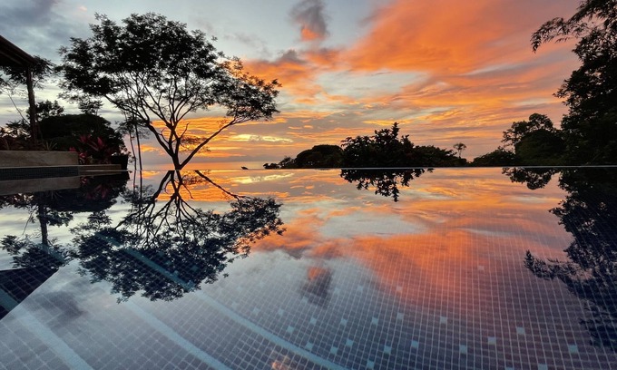 Large, nicely decorated, secluded home on the mountainside of Ojochal surrounded by rainforest. Beautifully groomed gardens with tropical flowers, and exotic birds and occasionally monkeys. Large patio, separate sitting areas, each with its own fan. Relaxing infinity pool. Large carport. 15 minutes from the beaches and some of the best restaurants in Costa Rica. Relax, unwind and enjoy.
